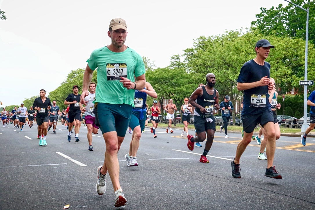 When he died, Ashman was barely older than I am now. His story was fresh on my mind during the long, straight, gloomy, and silent six-mile plod from Prospect Park to Coney Island, and so were those of the 100,000-plus other New Yorkers claimed by the same disease. That would be more than four of them for every runner on the course. First I pictured them lining either side of Ocean Parkway, and then I pictured them striding with us. At the end I imagined them doing what I was doing, running into the arms of their lovers and their moms.